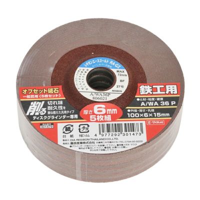 E-Value ディスクグラインダー専用 オフセット砥石 鉄工用 100×6×15mm 5枚入 301479