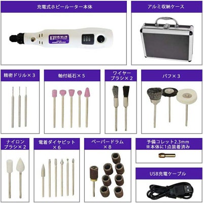 <BIGMAN 31点デラックスセット 充電式 ホビールーター 軽量 小型 コードレス HR-DX>