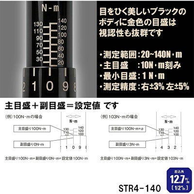 トルク設定範囲は20~140N・mというワイドレンジモデルで幅広い用途に使用いただけます。