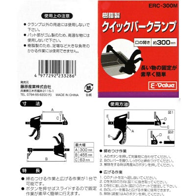E-Value 樹脂製 クイックバークランプ 最大口開き300mm ERC-300M