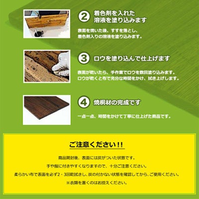 表面を焼いた後、着色剤入りの溶液を塗り、さらにロウを塗り込んでおります。
