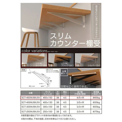 <水上 スリムカウンター棚受 450×150×38mm ツヤ消しホワイト 2本入 SCT-450W>