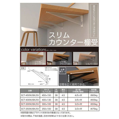 <水上 スリムカウンター棚受 300×100×38mm ツヤ消しホワイト 2本入 SCT-300W>