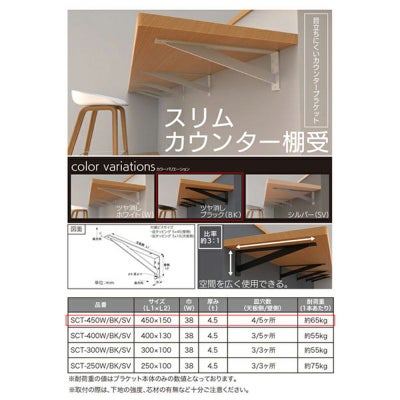 <水上 スリムカウンター棚受 450×150×38mm ツヤ消しブラック 2本入 SCT-450BK>