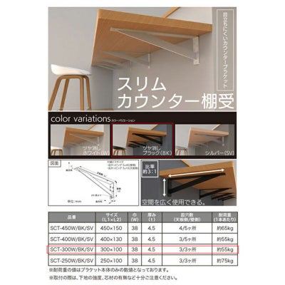 <水上 スリムカウンター棚受 300×100×38mm ツヤ消しブラック 2本入 SCT-300BK>