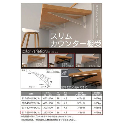 <水上 スリムカウンター棚受 250×100×38mm ツヤ消しブラック 2本入 SCT-250BK>