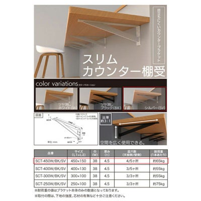 <水上 スリムカウンター棚受 450×150×38mm シルバー 2本入 SCT-450SV>