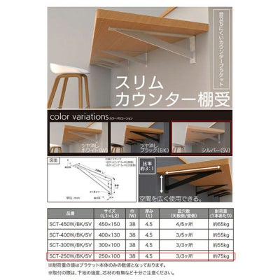 <水上 スリムカウンター棚受 250×100×38mm シルバー 2本入 SCT-250SV>