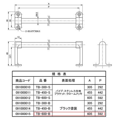 水上 FIRST PRO ステンレス タオルバー ブラック色 TB-600-B