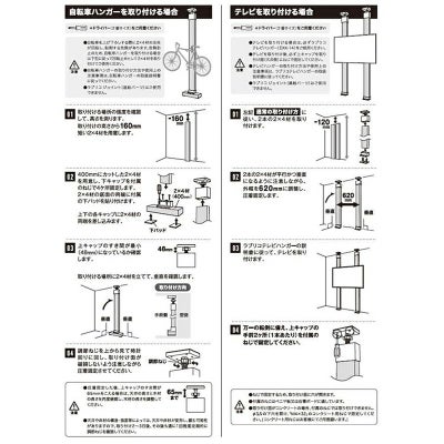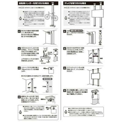 2×4アジャスター(強力タイプ)で柱を2本立てることで、テレビの壁掛けをすることができる専用のテレビハンガーパーツが登場しました。これまでのテレビハンガーでは間違えやすかった、パーツの上下左右を無くし、初心者でも取付けやすい設計です。