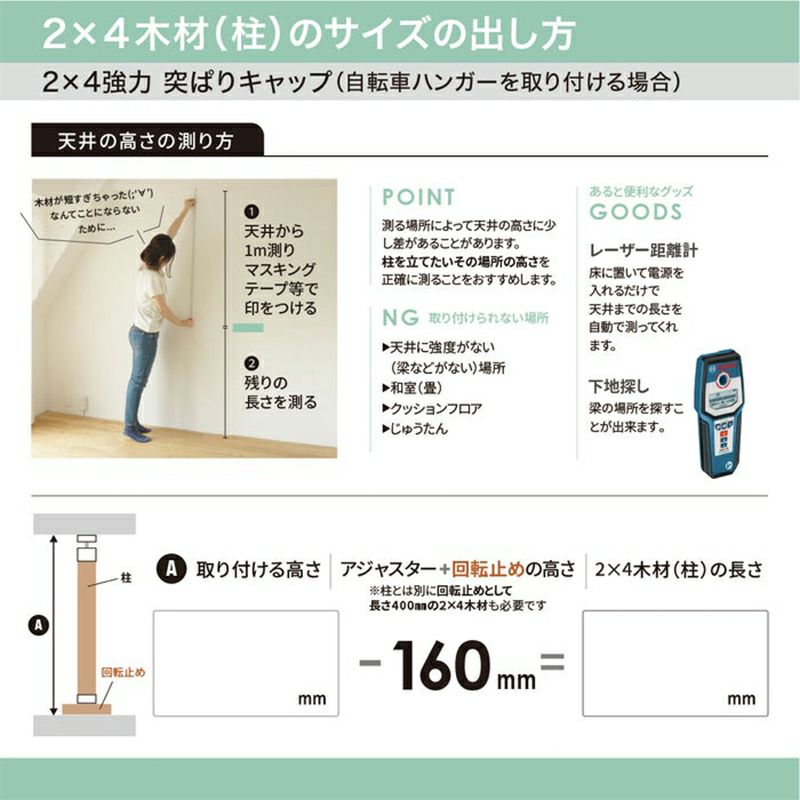 使用荷重:40kg(自転車を掛ける場合は20kg)