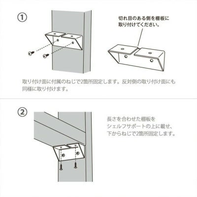 セット内容:シェルフサポート2個、ねじ8本、取扱説明書