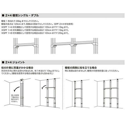 取付寸法(棚板の長さ):2×4・2×6:120cmまで/1×4・1×6・1×8:100cmまで