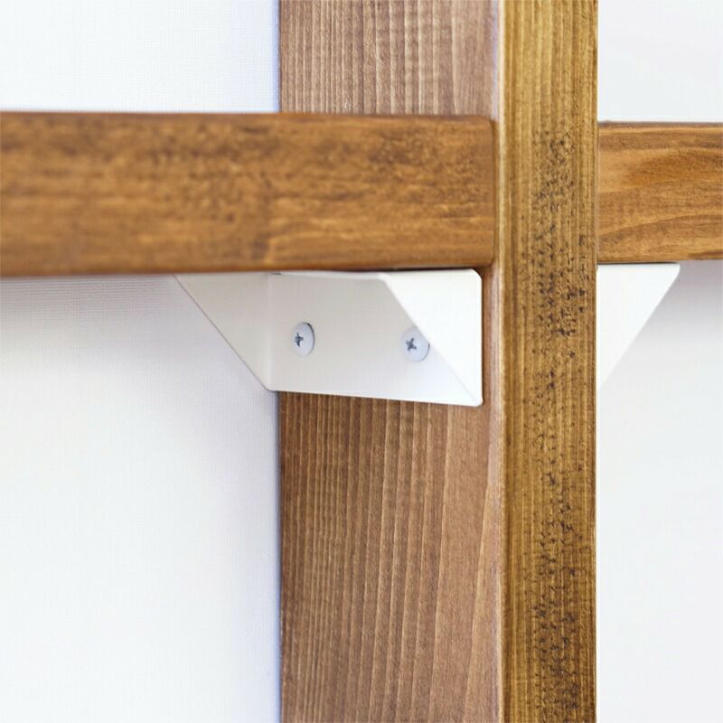 こちらは、木材で立て掛けた柱に棚を取り付けるための棚受けパーツです。