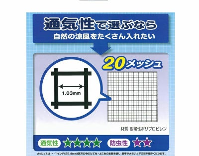 ●ネットには裏表、縦横はありませんので、大小の窓をまとめて張り替える際でも無駄なくお使いいただけます。