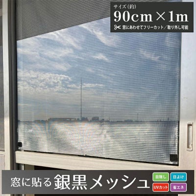 「窓に貼る銀黒メッシュ」は、粘着テープで簡単に取り付けられる目かくし・省エネ用メッシュです。