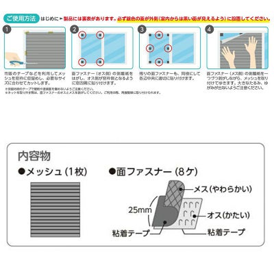 内容物:メッシュ1枚、面ファスナー16個
