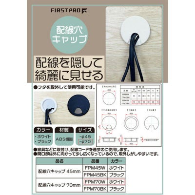 水上 配線穴キャップ 70mm ホワイト FPM70W メール便対応(8個まで)