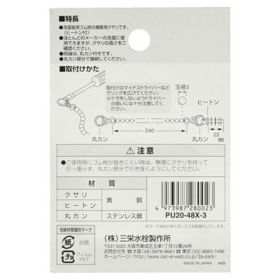 SANEI 洗面用ゴム栓クサリ 洗面用品 PU20-48X-3 メール便対応(6個まで)