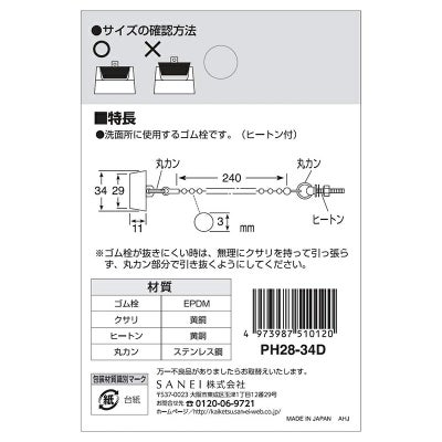 SANEI 洗面用クサリ付ゴム栓 洗面用品 PH28