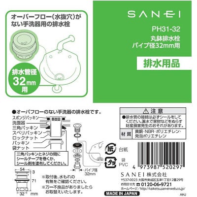 SANEI 丸鉢排水栓 パイプ径32mm用 排水用品 PH31-32