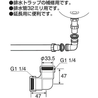 SANEI トラップ用エルボ 排水管径32mm用 排水用品 PH770-4-32