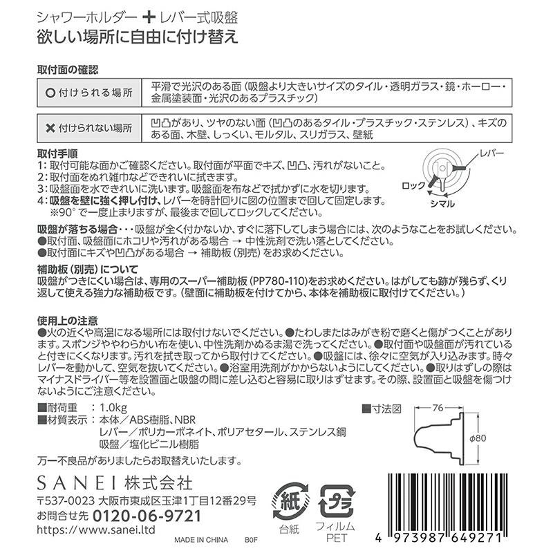 SANEI 吸盤式シャワーフック 風呂用品 PS30-37-W