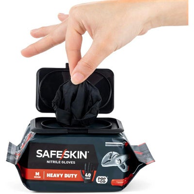 DIYやガーデニング、自転車・バイク・車のメンテナンスなどの作業時に、手を清潔に保ち、保護できます。SAFESKIN*ニトリルグローブPOP-N-GO*パックは携帯しやすく、いつでもどこでもグローブを取り出せます。