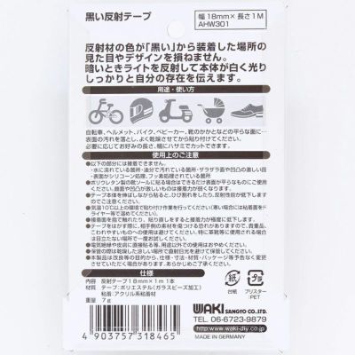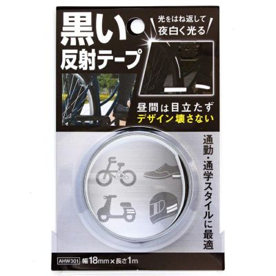 和気産業 黒い反射テープ ブラック 幅18mm×長さ1m 通勤 通学 デザイン壊さない AHW301
