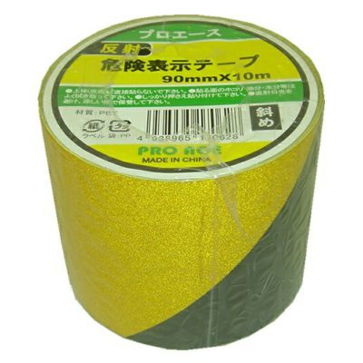 熱田資材 安全反射標識テープ 90mm×10m 斜めシマ 反射 危険表示テープ プロエース