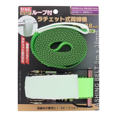 <三共コーポレーション trad ラチェット式荷締機 ループ付(シボリ) 5m×38mm グリーン TRN-385L>