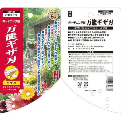 千吉 ガーデニング鋏 万能ギザ刃 万能タイプ 剪定ばさみ 剪定はさみ SSP-22 メール便対応(2個まで)