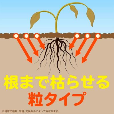 ●根まで枯らして3ヵ月生えない。長期間雑草の繁殖を抑制し、面倒なお庭の草取りを楽にする除草剤です。