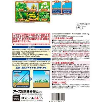 ・散布する環境(時期、天候、場所、雑草の種類)によっては効力に差が出る場合があります。
