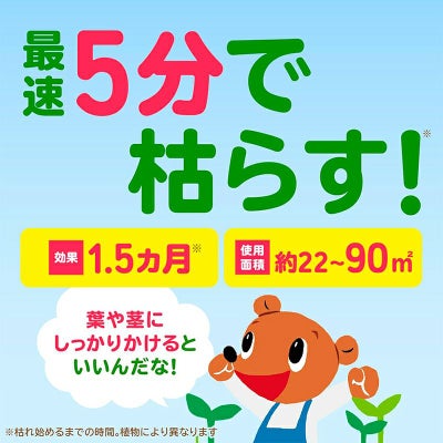●最速5分で枯らす※枯れ始めるまでの時間。植物により異なります。面倒な草取り、雑草対策におすすめです。
