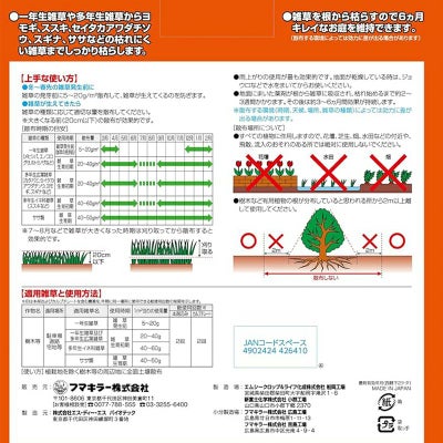 ※大きくなる前(20cm以下)の散布が効果的です。雨上がりの使用が最も効果的です。地面が乾燥している時は、ジョウロなどで水をまいてからお使いください。