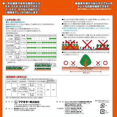 ※散布する環境(時期、天候、場所、雑草の種類)によっては効力に差が出る場合があります。