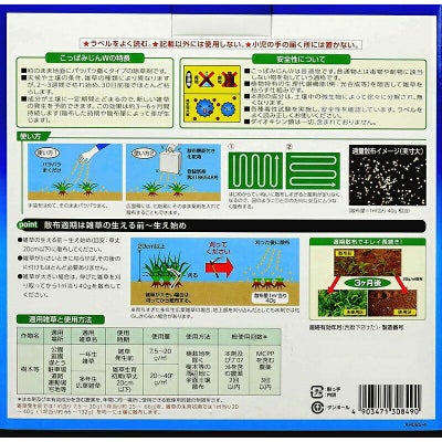 雑草発生前では1平方メートル当たり5~20g、雑草の生育初期では1平方メートル当たり20~40gを均一に土壌に撒いてください。