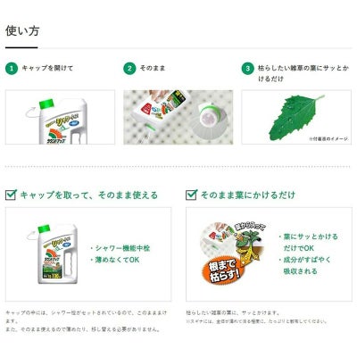 3.枯らしたい雑草の葉にサッとかけるだけ