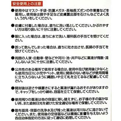※農作物、草花、樹木などに薬液が付着しますと薬害が生じますので、飛散しないよう十分に注意してください。