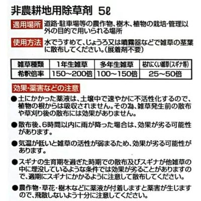 ※土にかかった薬液は土壌中で速やかに不活性化する為、植物の根からは吸収されません。その為、雑草発生前に散布や草刈り後の散布には効果はありません。
