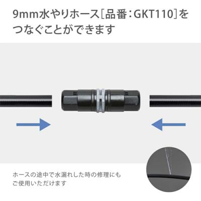 9mm水やりホース同士の接続や延長にお使いいただけるアイテムです。ホースの損傷時には補修用アイテムとしてお使いいただくこともできます。