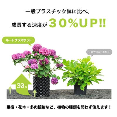 ルートプラスポットは、側面の通気口が根を外側へ誘導し、自然の空気で根が剪定されるエアープルーニングの空気剪定(根切り)ポットです。