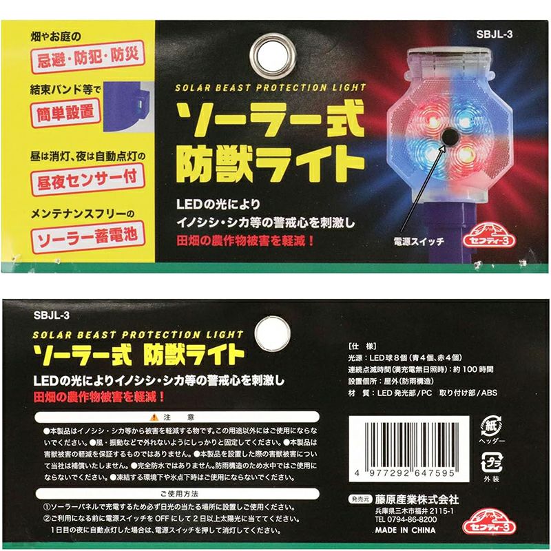 セフティー3 ソーラー式防獣ライト 青 赤 LEDライト SBJL-3