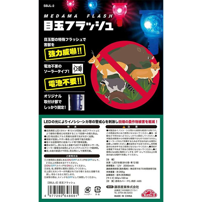 セフティー3 ソーラー式防獣ライト 目玉フラッシュ 青 赤 LEDライト SBJL-2