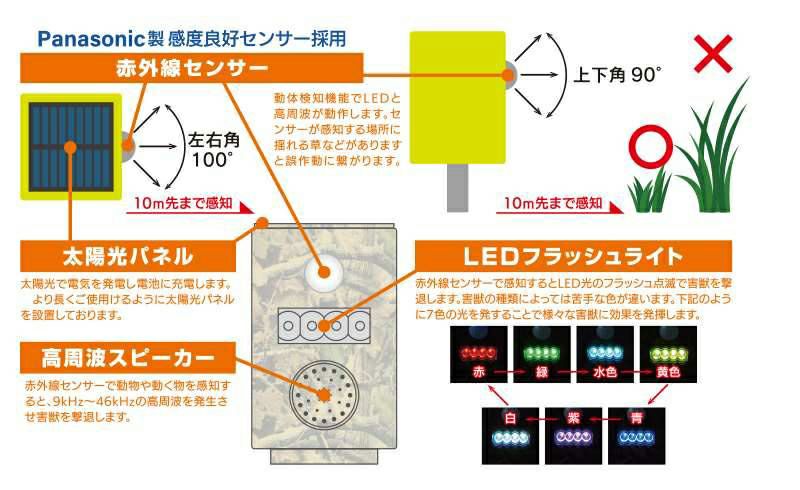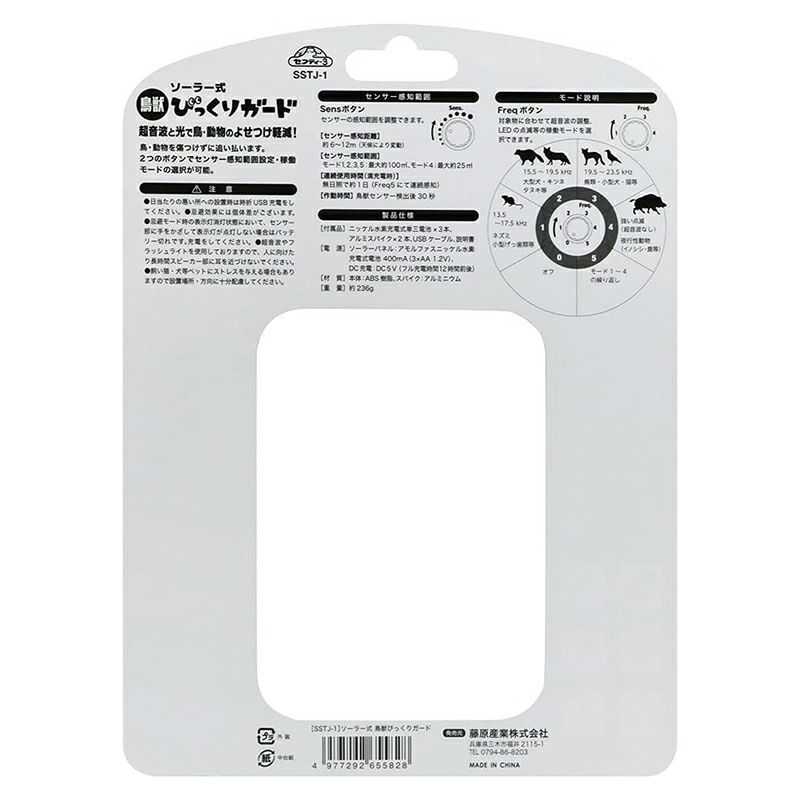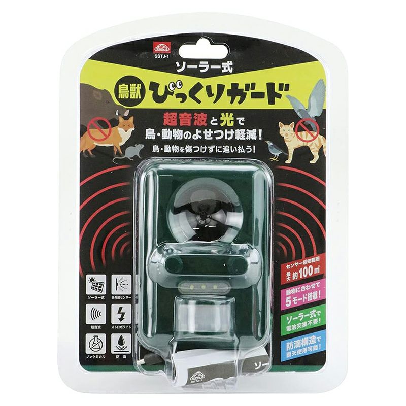 セフティー3 ソーラー式 鳥獣びっくりガード 防獣 防鳥 超音波 LEDライト SSTJ-1