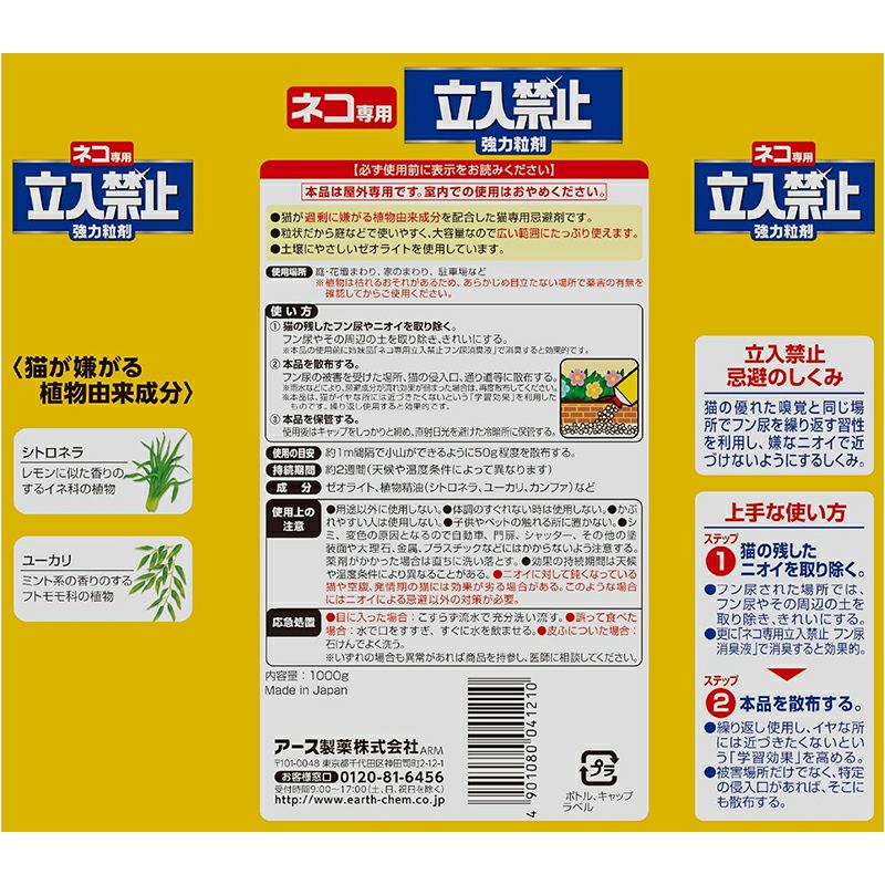 アース製薬 ネコ専用 立入禁止 強力粒剤 1000g ハーブ系 猫用 忌避剤 アースガーデン