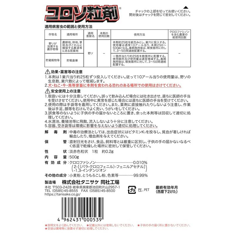 タニサケ 殺鼠剤 コロソ粒剤 500g ねずみ駆除
