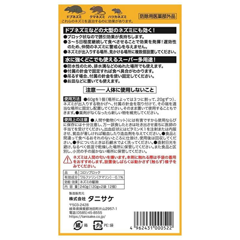 タニサケ 殺鼠剤 コロソブロック 120g×2袋(12個入り) ねずみ駆除