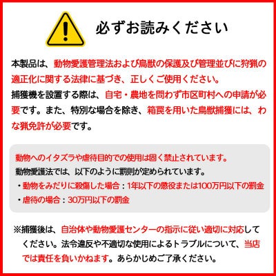 ◆捕獲する動物によっては、保護動物であることもありますので必ず役所等に問い合わせになってから使用してください。